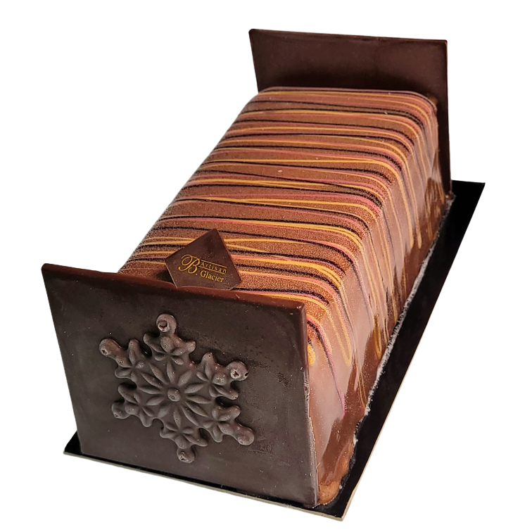 Glace Chocolat, crème glacée Noisette (100% Piémont), croquant praliné.